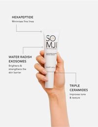 A light textured protective serum with Water Radish Exosomes and three different Ceramides to increase skin hydration and boost skin repair and barrier protection for smoother, healthier and nourished skin. Together with Hexapeptides and active extracts from Oat Kernel, Pine Bark and Patchouli, this power-packed serum is suitable for all skin types, providing a super protective boost to your skincare regime when needed.